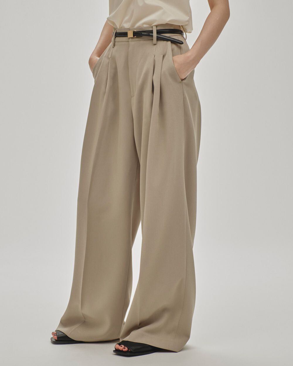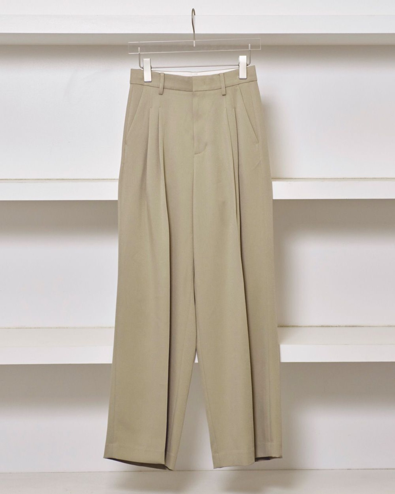 ほどよいシャリみと清涼感のある、ワイドシルエットのトラウザーズ。裏地はついていないため真夏もさらっと履いていただけます。上品な光沢感が魅力の生地を使用しました。ミニマルなデザインなので、どんなスタイリングにも馴染む一枚です。