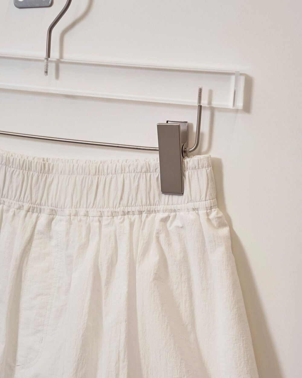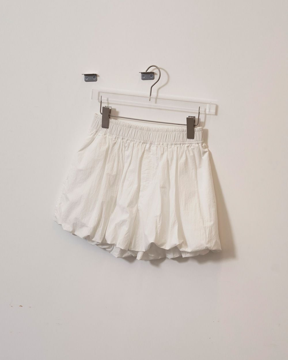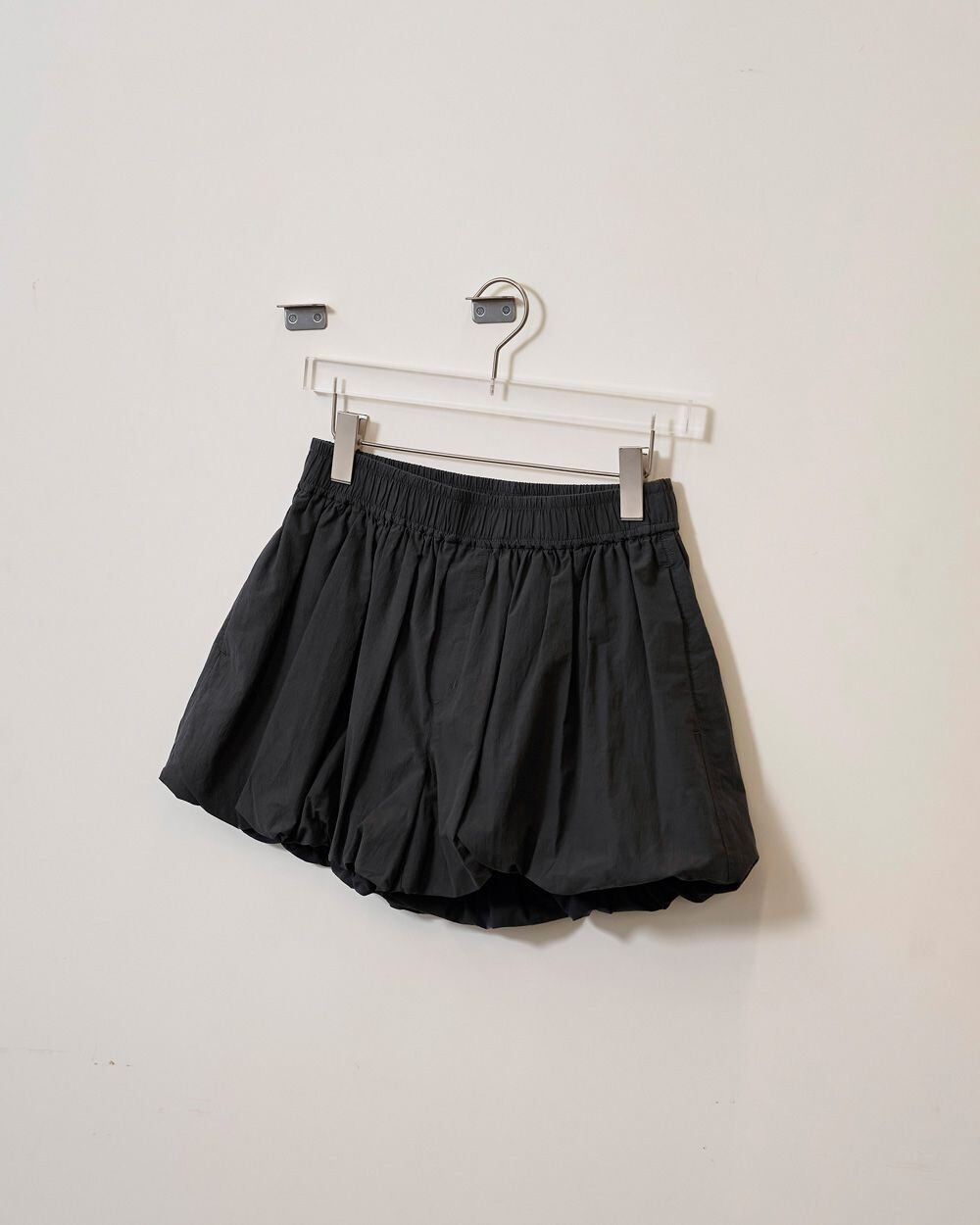 バルーンシルエットのショートパンツ。ドライな肌触りと軽やかな質感が夏のスタイリングにぴったり。生地のハリがバルーンシルエットを生み出します。ソックスとサンダルの組み合わせや、ブーツスタイルで肌見せを取り入れることで、スタイリングにアクセントを加えます。国内のコットン混生地を使用。