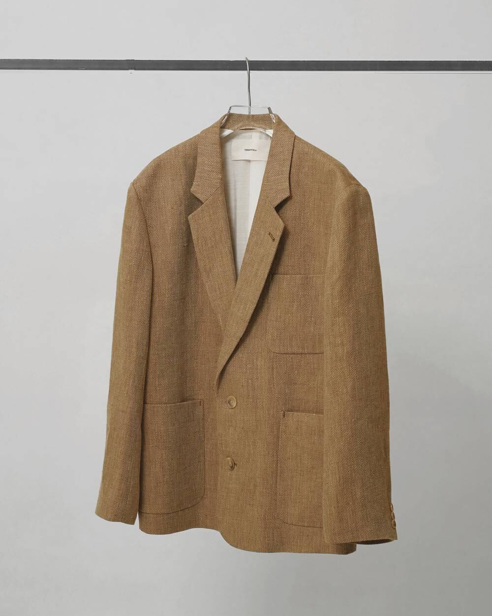 上質なリネン100%生地を使用し、オリジナルカラーに染めたジャケット。自然な張りや艶感、奥行きのある色味が表情豊かに映える一枚です。TODAYFULらしいオーバーサイズのシルエットで仕上げ、マニッシュなムードを漂わせながらもラフに羽織れるデザイン。